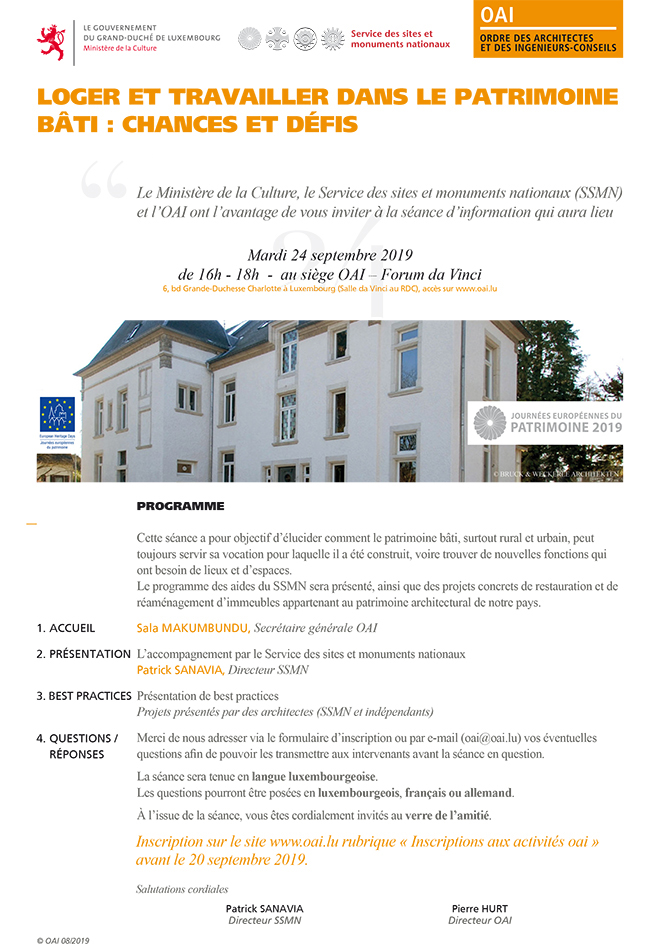 mardi 24 septembre 2019 de 16h à 18h au Siège OAI